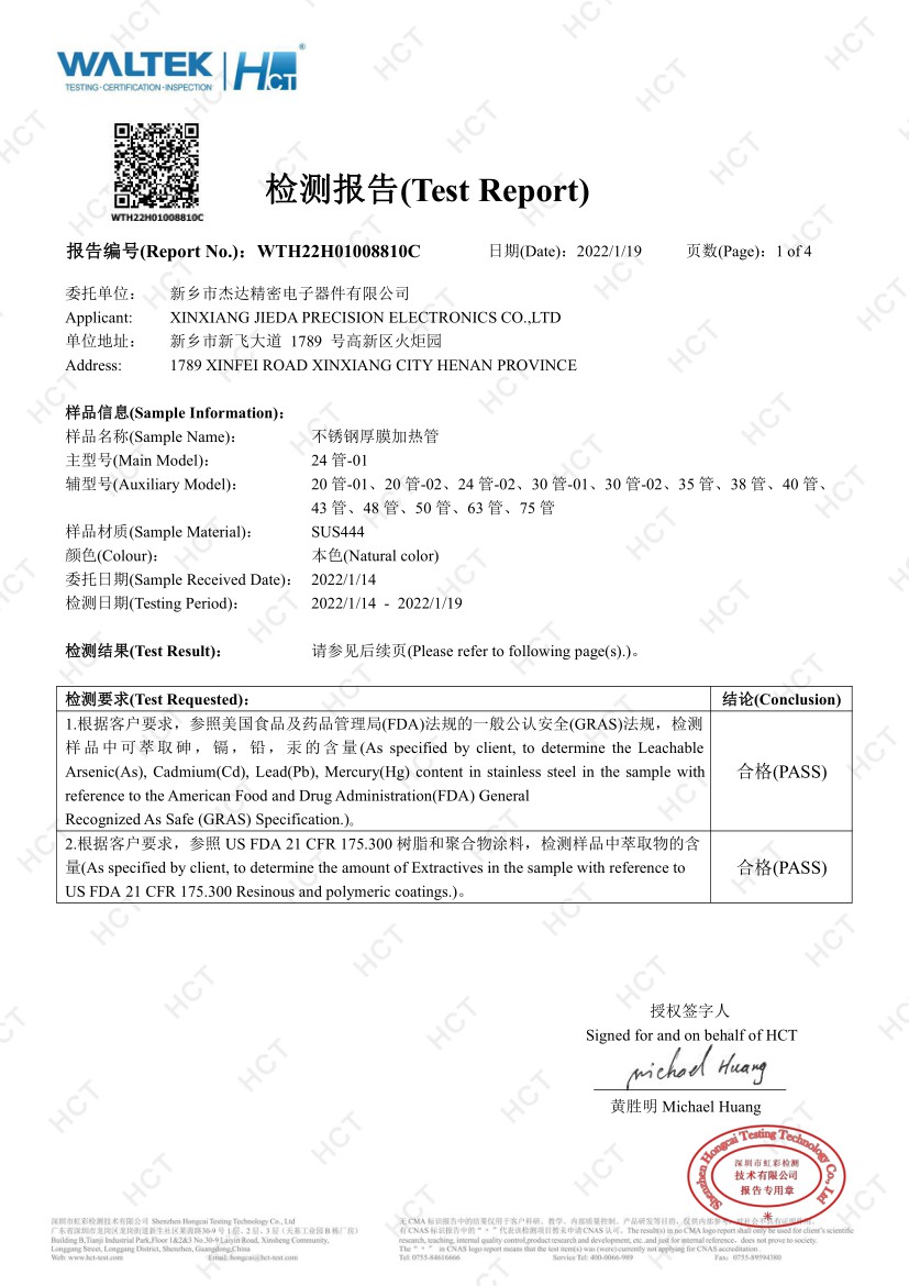 杰達(dá)公司是一家以不銹鋼厚膜電加熱技術(shù)為核心,集技術(shù)創(chuàng)新、產(chǎn)品制造、銷售服務(wù)為一體的高xin技術(shù)企業(yè)。公司主要產(chǎn)品為厚膜電熱元件及電熱集成模塊。